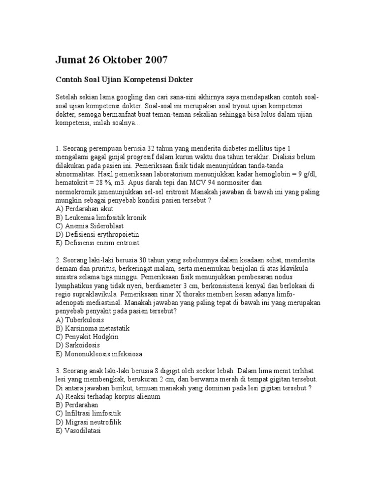 Contoh Soal Uji Kompetensi Dokter