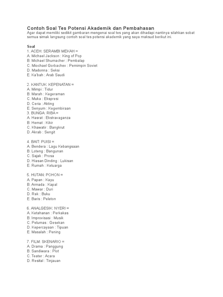 Contoh Soal Tes Potensi Akademik Dinas Perhubungan Pdf ...